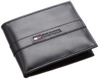 100% Cowhide Leather Bifold wallet featuring embossed logo on pebbled strip and a removable pass holder with ID window One bill compartment and six card slots
